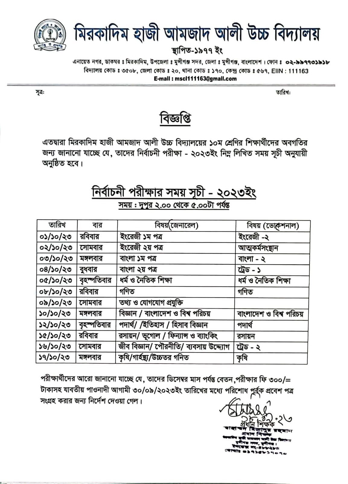 ১৮-০৯-২০২৩*** নির্বাচনী পরীক্ষার সময়সূচী ২০২৩